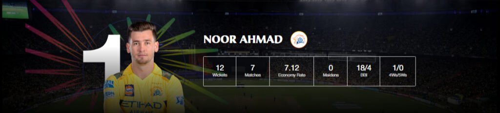 | 1 | Noor Ahmad | Gujarat Titans | 12 | 6 | 7.50 |